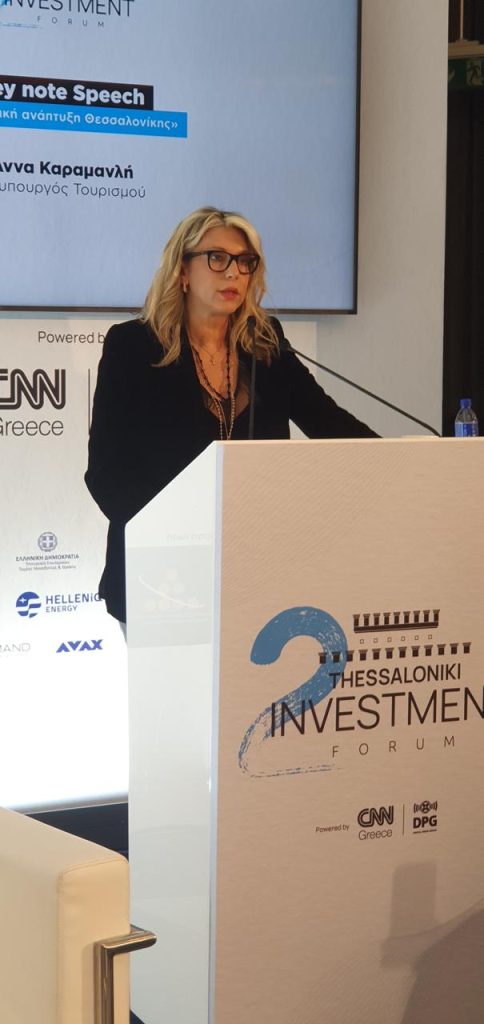 Η Υφυπουργός Τουρισμού Άννα Καραμανλή συμμετείχε στο 2ο Thessaloniki Investment Forum που διοργάνωσε το CNN Greece στη Θεσσαλονίκη, όπου μίλησε για τον ρόλο της πόλης στο νέο αναπτυξιακό και τουριστικό μοντέλο της χώρας.