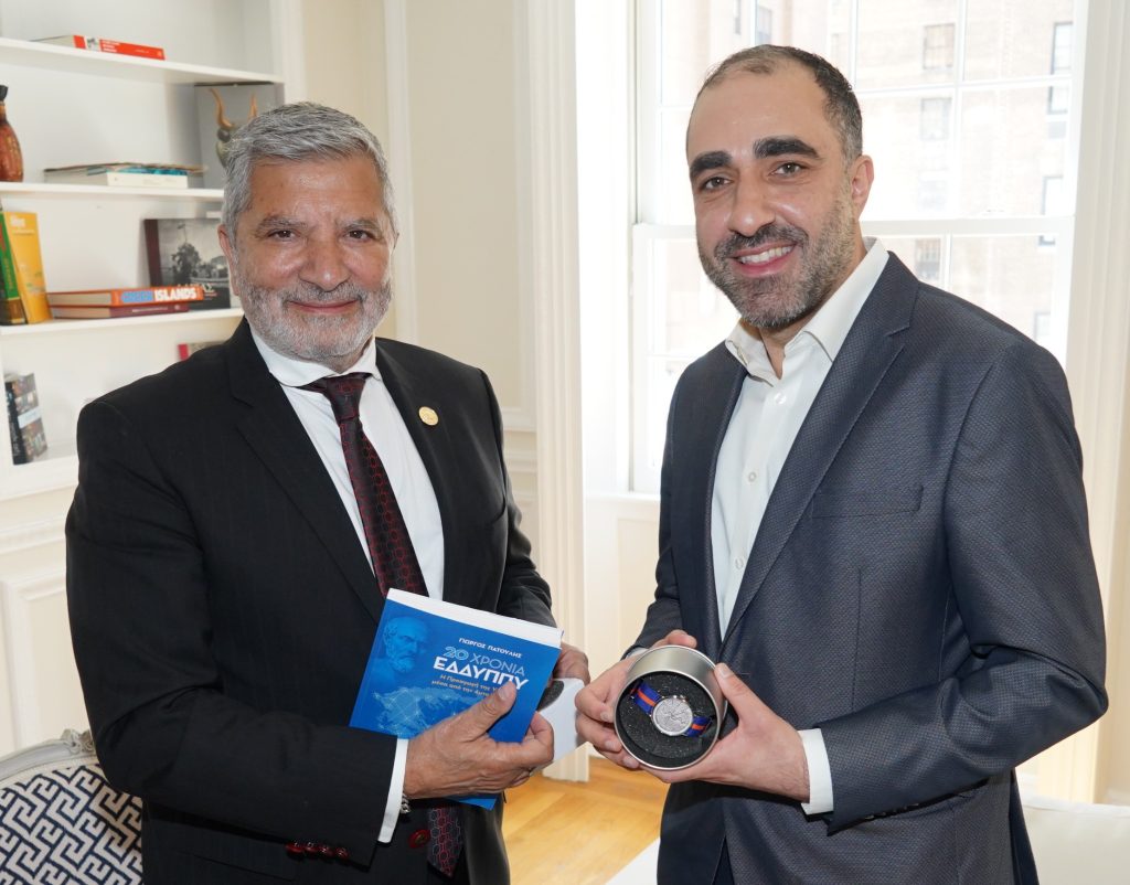 Στη συνάντηση παρευρέθηκαν ο Γενικός Γραμματέας του Παγκόσμιου Ιπποκράτειου Ινστιτούτου Ιατρών Δρ. Α. Πολυδώρου, καθώς και ο Γενικός Πρόξενος της Κυπριακής Δημοκρατίας στη Νέα Υόρκη κ. Κ. Πογιατζής, επιβεβαιώνοντας το κοινό ενδιαφέρον για την ενίσχυση των διεθνών συνεργασιών στον τομέα της υγείας.